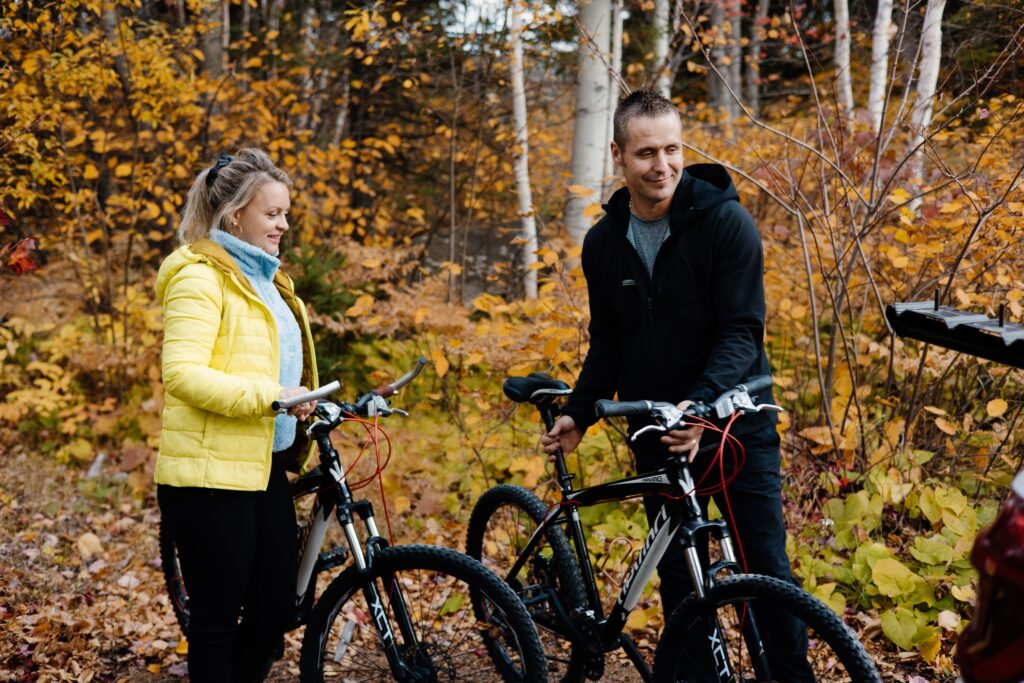 Avec ses 256 kilomètres de circuit cyclable, la Véloroute des Bleuets est l’activité parfaite pour admirer les paysages automnaux. Que vous choisissiez un court tronçon ou le tour complet, vous traverserez des forêts enflammées, des villages accueillants et des points de vue spectaculaires sur le lac. En automne, la quiétude et la lumière dorée rendent l’expérience encore plus mémorable.